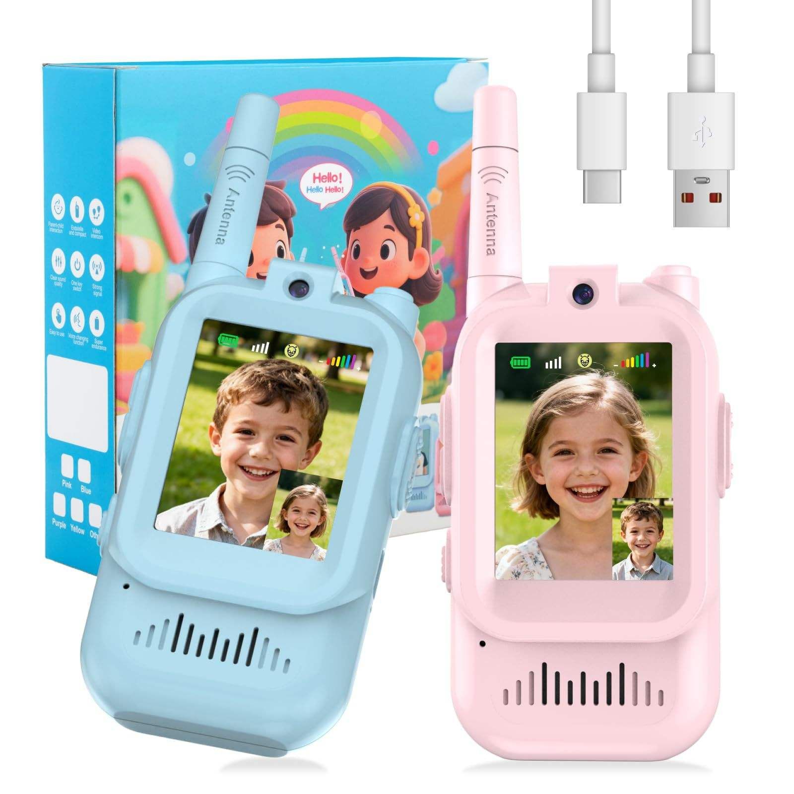 2.4G Video Walkie Talkies Toy for Kids Handheld 2 Pack Rechargeable Intercom Long Range Outdoor Play Camping Family Games