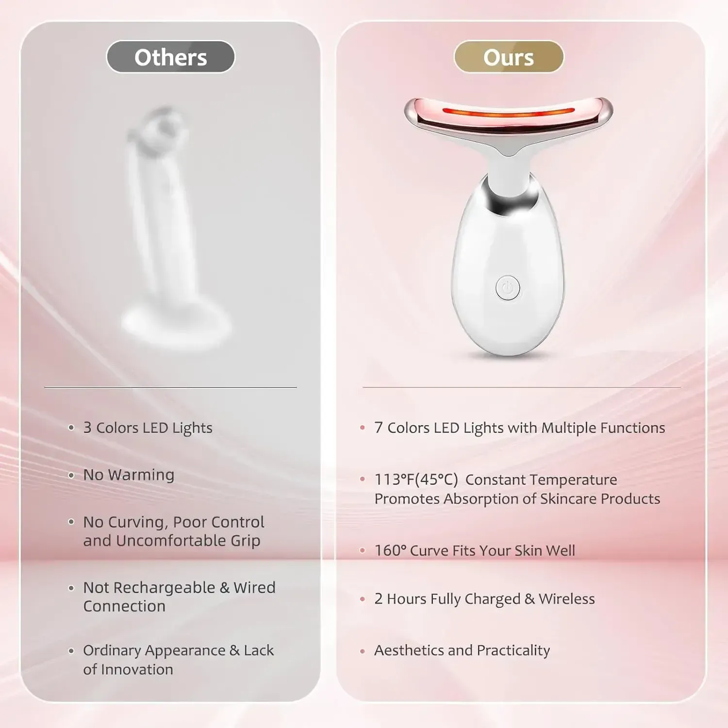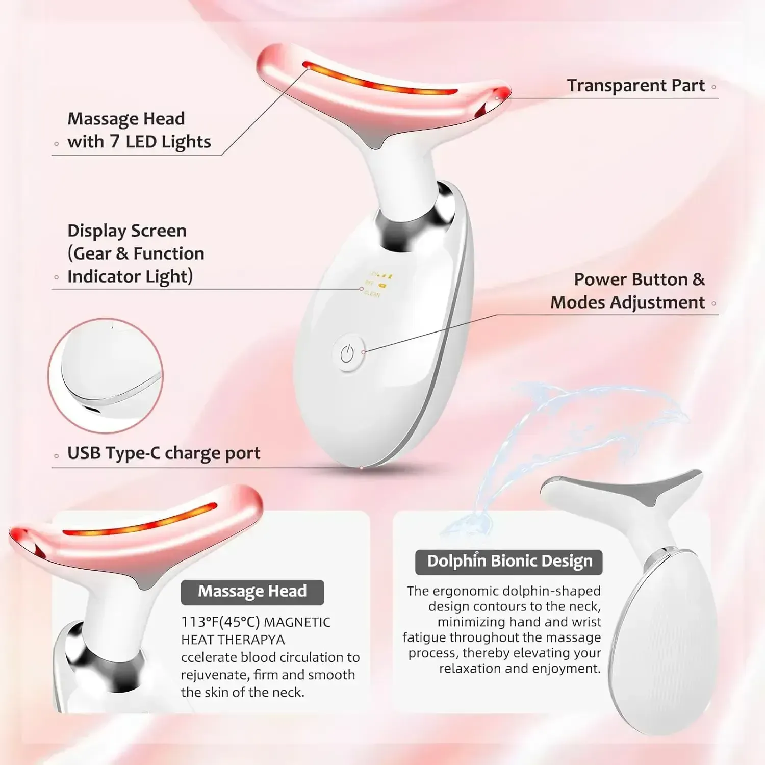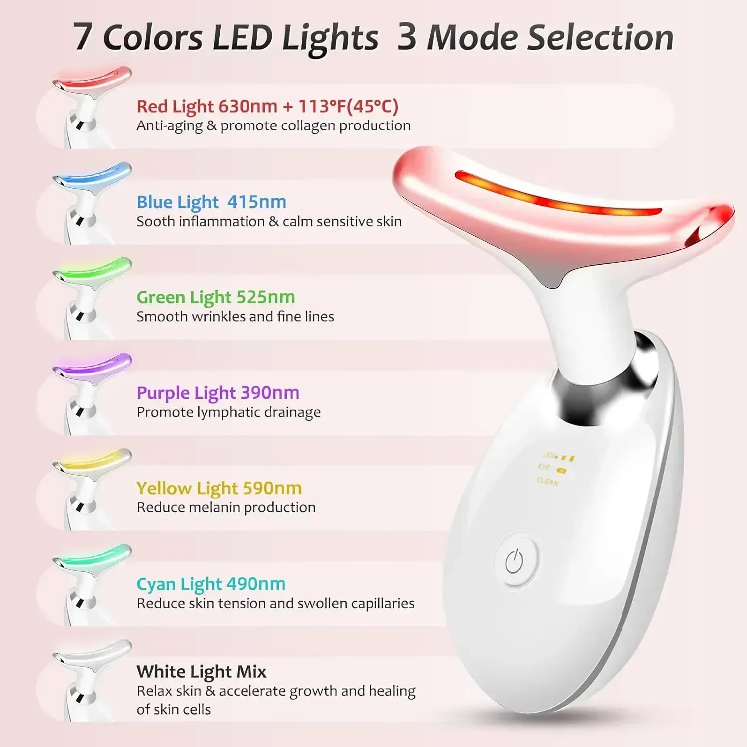 Red Light:Stimulate collagen regeneration, fade neck lines, tighten sagging neck skin, and plump neck contours