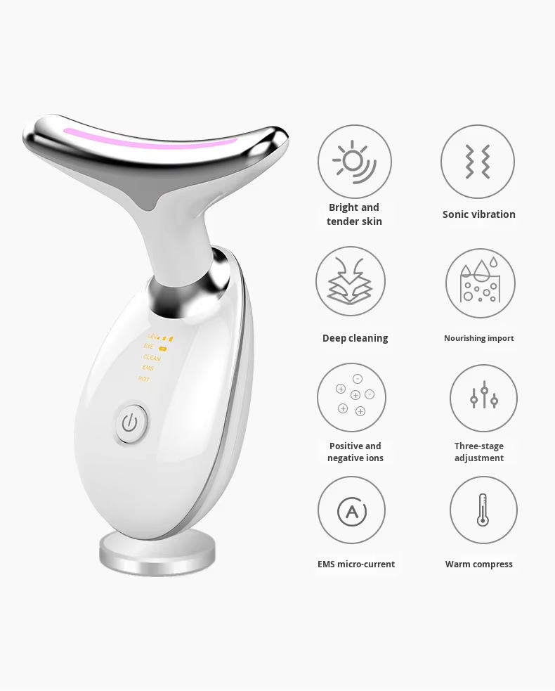 Feature: Specifications: Product name: Color light wrinkle beauty neck instrument Package Content: 1 x neck massager