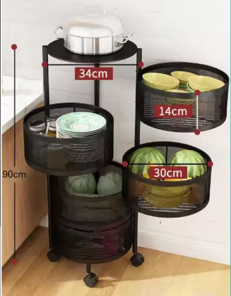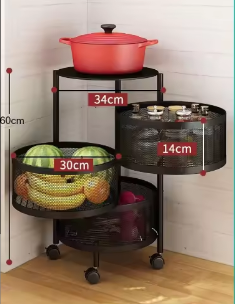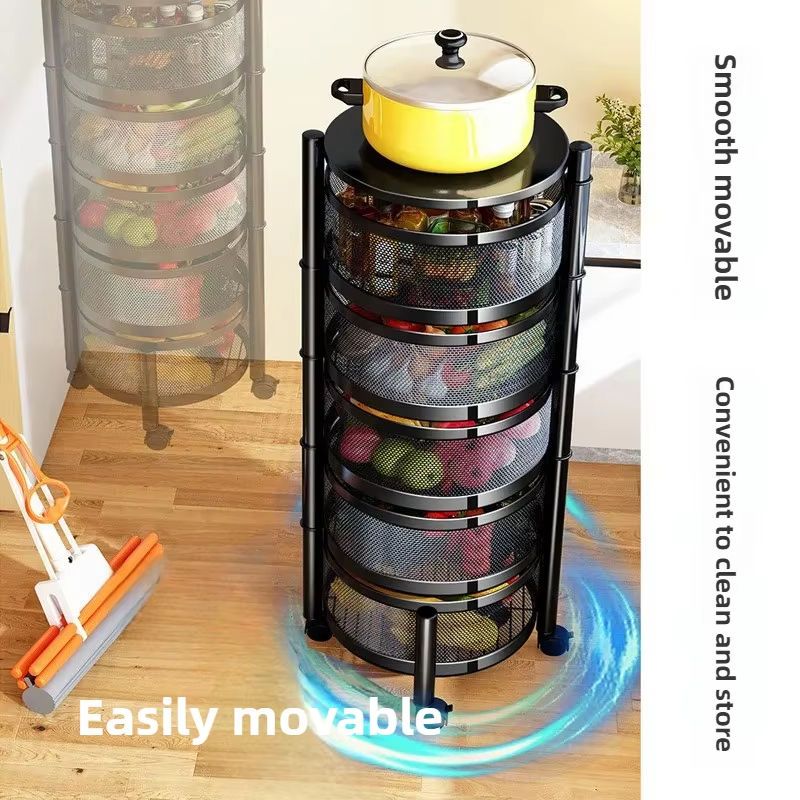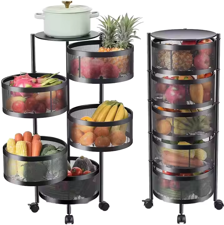 Hot Selling Rotating Carbon Steel Mesh Kitchen Storage Rack Organizer Cart for Vegetable Fruit Storage