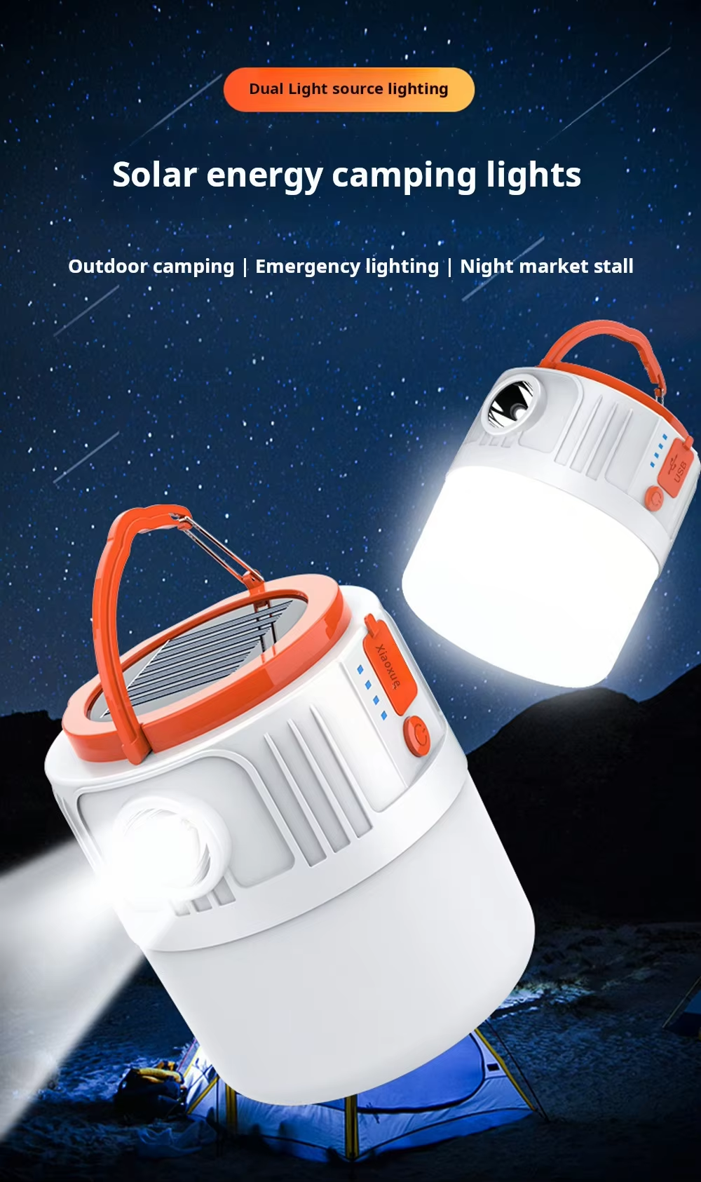 LED Solar Camping Light USB Charging Remote Control for Outdoor Emergency Night Market Lighting Street Vendor Camping Lamps