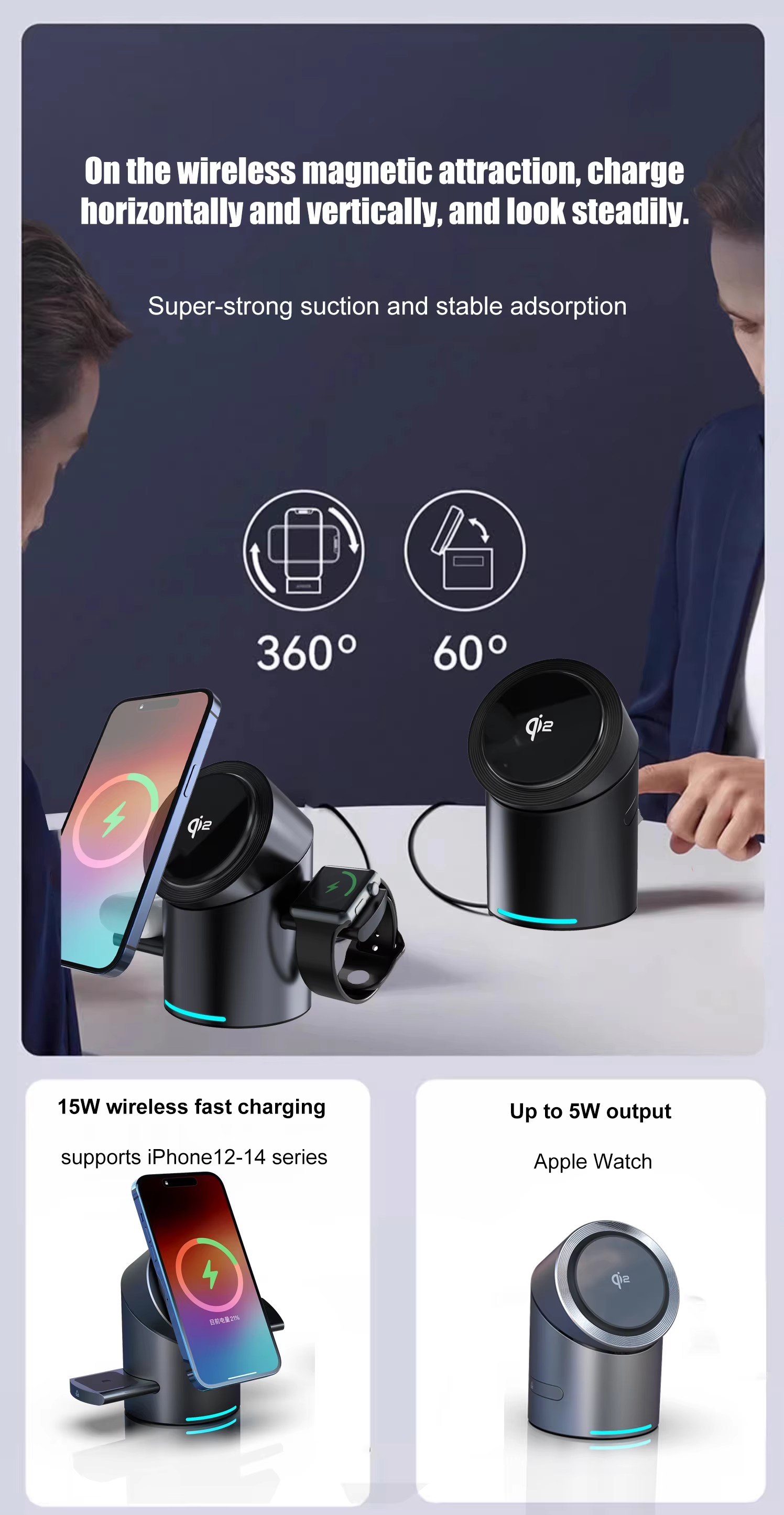 Limited-time offer!MagSafe magnetic three - in - one wireless charger, a fast - charging stand for mobile phones. It can rotate and serves as a desktop charging station