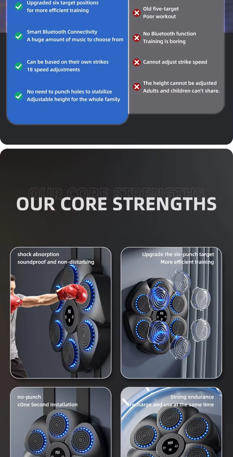 Bluetooth Connectivity: Enjoy music while practicing boxing.