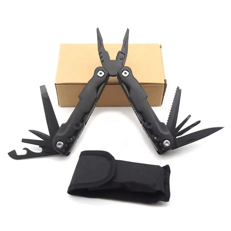 Survival Kit Multi-Pocket Metric Serrated Multi-Purpose Pliers Portable Folding Plier 420 Stainless Steel Multitool Black